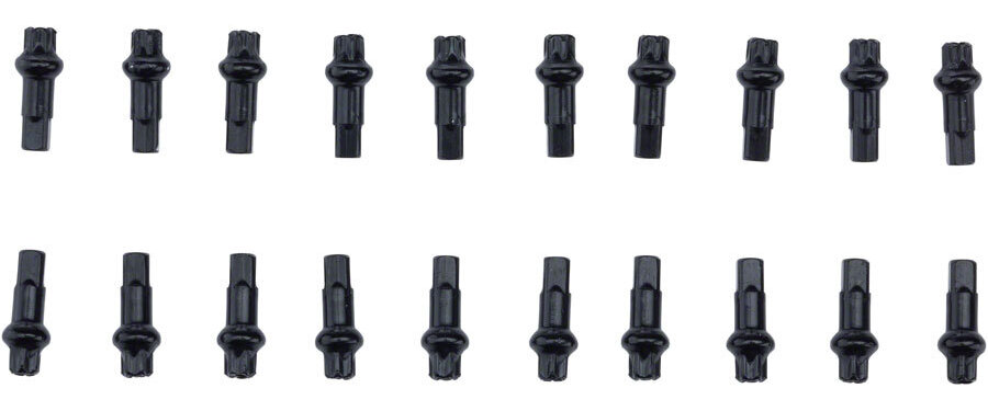 The DT Pro Head shape, combined with both a torx and a square tool interface, makes wheel building a lot easier. The spherical contact surface aligns the nipple perfectly with the spoke. All-brass nipples are recommended for e-bike use. Weight: starting at 26g for 64 nipples.
