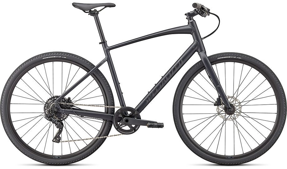 | Frame | Specialized A1 Premium Aluminum, Fitness Geometry, butted tubing, internal cable routing, flat-mount disc, quick-release, Plug + Play rack/fender mounts |
