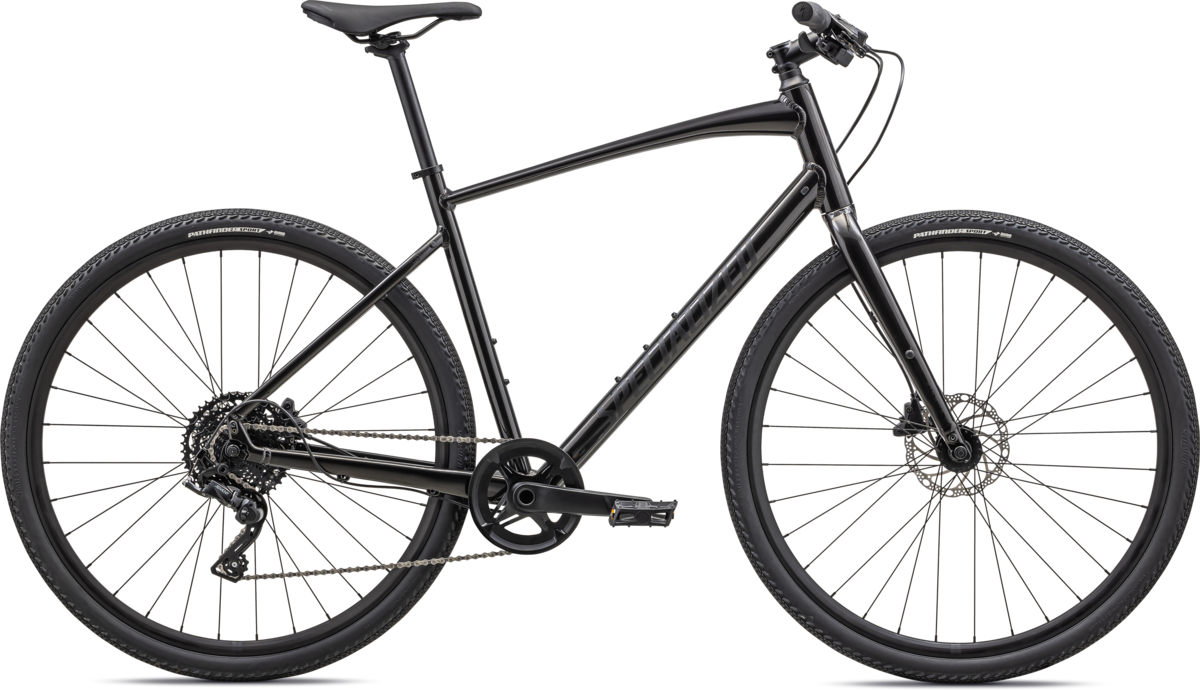 | Frame | Specialized A1 Premium Aluminum, Fitness Geometry, butted tubing, internal cable routing, flat-mount disc, Plug + Play rack/fender mounts |